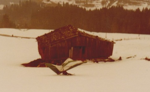Im Skilager 1979 der damaligen 9.Klassen von unserem Gymnasium in der Wildschönau konnte ich am freien Mittwoch-Nachmittag zwei Kollegen von der Fachschaft Sport dazu überreden, auf dem Hang hinter unserem Quartier mal mit meinem leichten und gutmütigen Bergsteigerdrachen einen Flugversuch zu wagen.