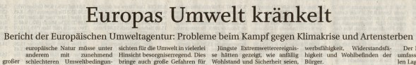 "Deutschland gehört in puncto Klimaziele 2020 zu den Schlusslichtern in der EU. Neben Deutschland werden nur sechs andere EU-Staaten ihre Vorgaben nicht erfüllen. Die anderen 21 Nationen übererfüllen ihre Ziele sogar. Spitzenreiter sind demnach Ungarn und Kroatien, die fast 30 Prozent weniger CO² ausgestoßen haben werden als erlaubt."