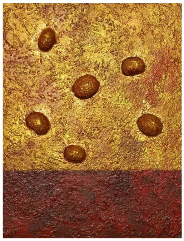 Und nicht zuletzt stellt die Farbe Gold ein weiteres Markenzeichen meiner Kunst dar, zumal Gold eine ambivalente Bedeutung hat: Gold steht symbolisch für etwas sehr Wertvolles, aber auch für die menschliche Gier, welche die Menschen schon bis in die entlegensten Winkel der Erde geführt hat.