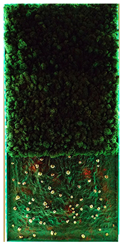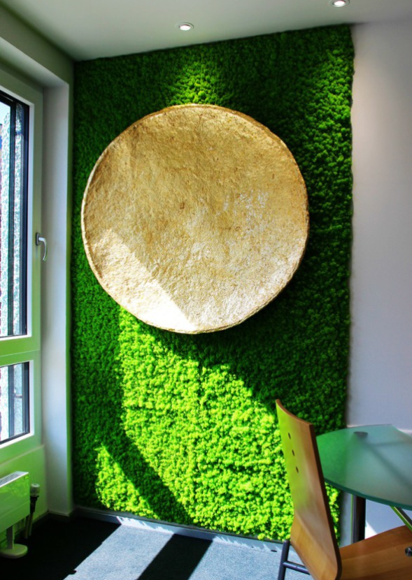 b) Ein in enger Absprache und - soweit möglich - praktischer Zusammenarbeit gefertigtes Wandbild aus Islandmoos / Rentierflechte.