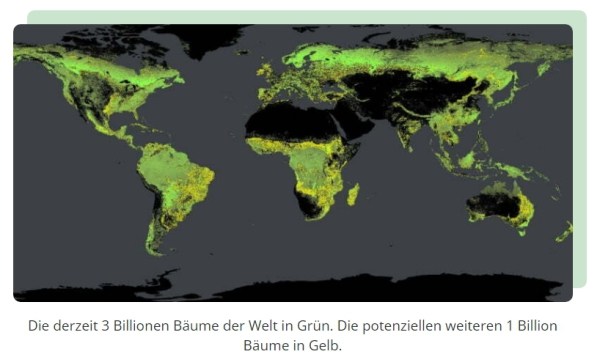 "Die Welt hat derzeit 3.000 Milliarden Bäume und kann 1.000 Milliarden mehr beherbergen. Bäume sind eines der mächtigsten Instrumente gegen die Klimakrise. Nur durch die Wiederherstellung dieser Wälder werden wir in der Lage sein, den Temperaturanstieg unter 2 Grad Celsius zu halten."