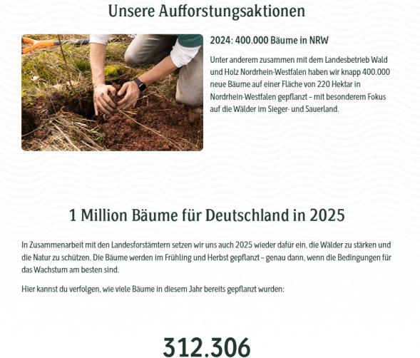 Aber auch Großkonzerne, die sonst eher vom Gegenteil leben, beteiligen sich mittlerweile an derartigen Baumpflanzprojekten:
